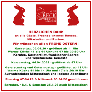 – Ihrem Ort, um fränkische Küche in ihrer reinsten Form zu genießen. Tauchen Sie ein in die reiche Tradition und den unverwechselbaren Geschmack unserer regionalen Spezialitäten.